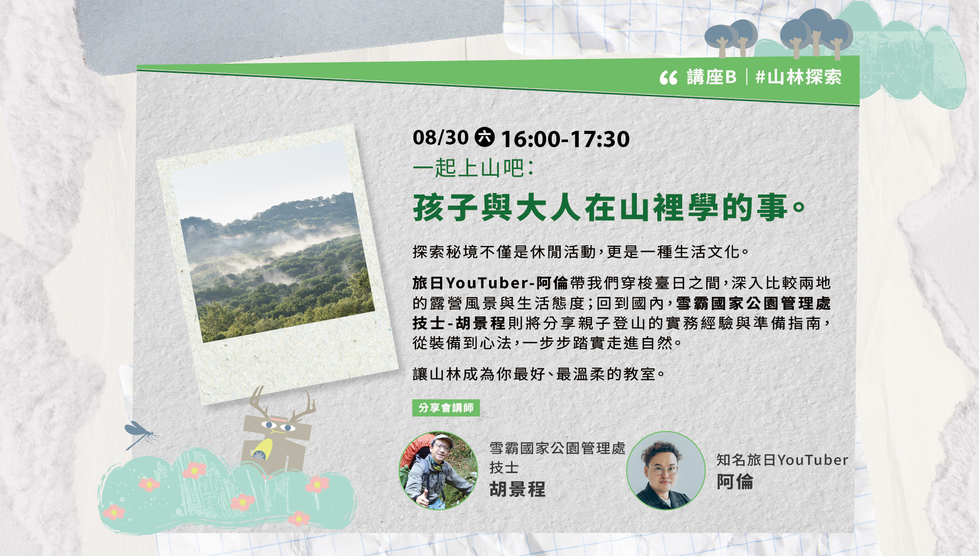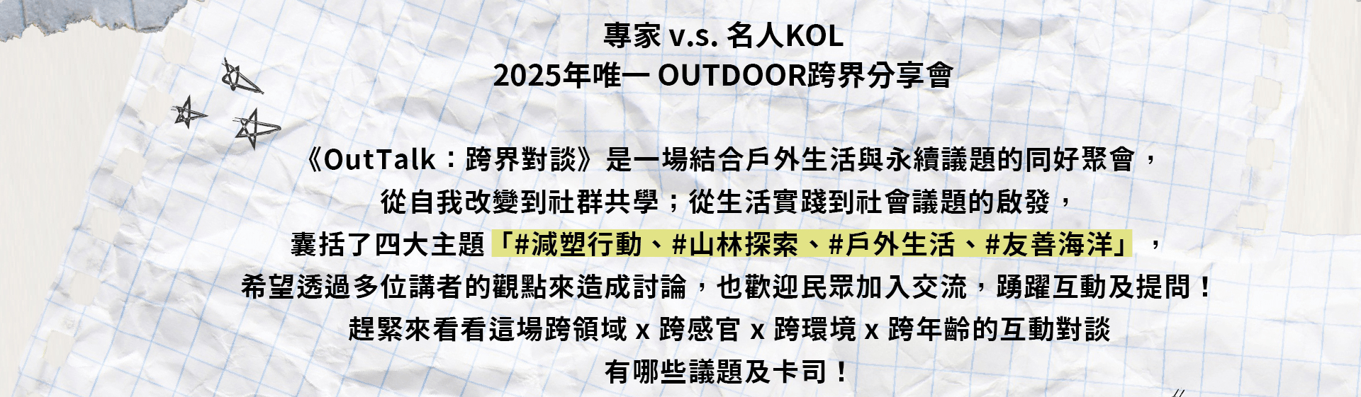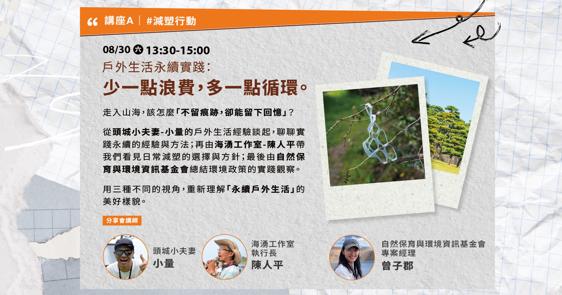 「減塑行動、山林探索、戶外生活、友善海洋」
